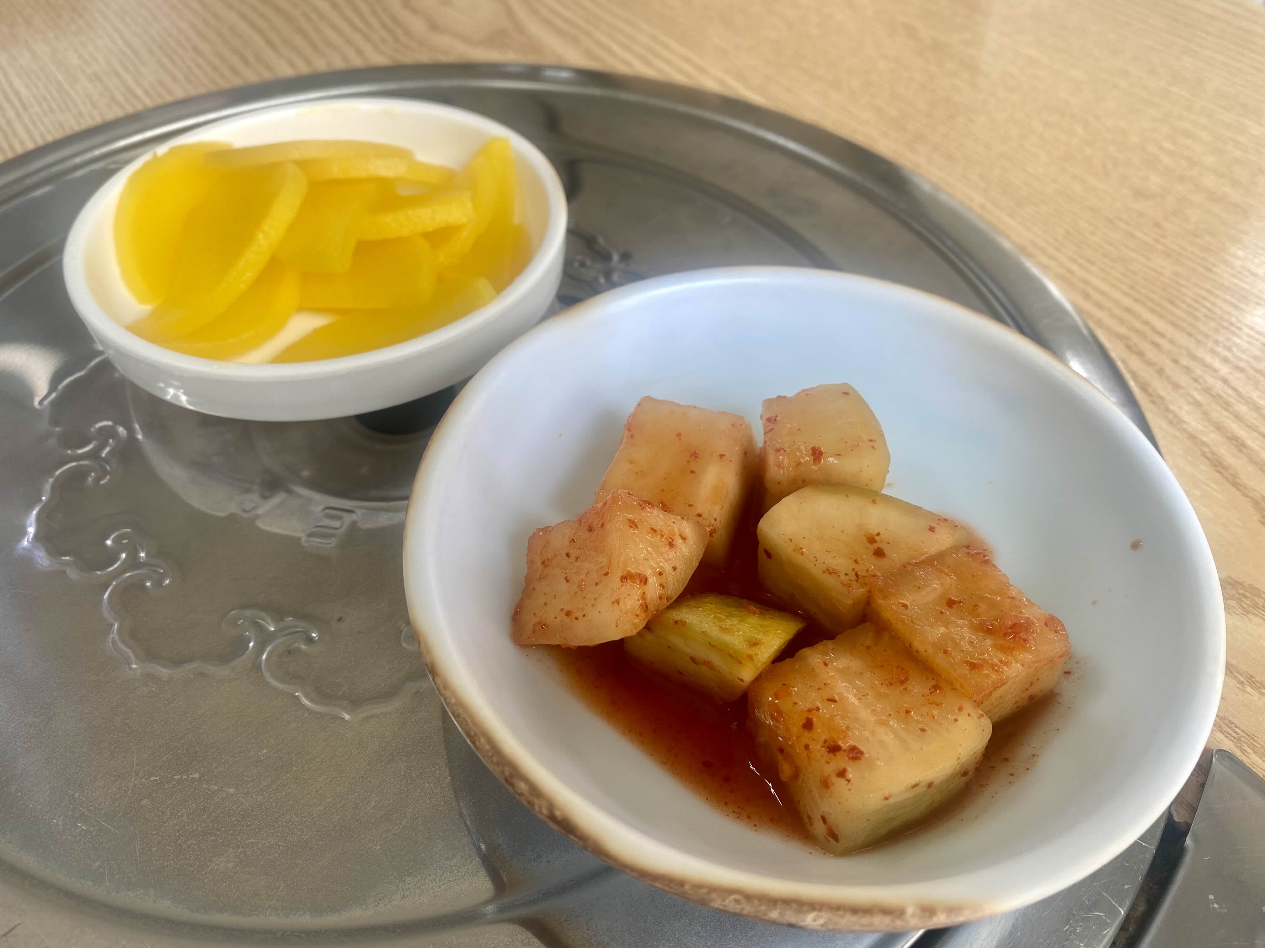 다음은 깍두기와 단무지가 차례로 준비되고요