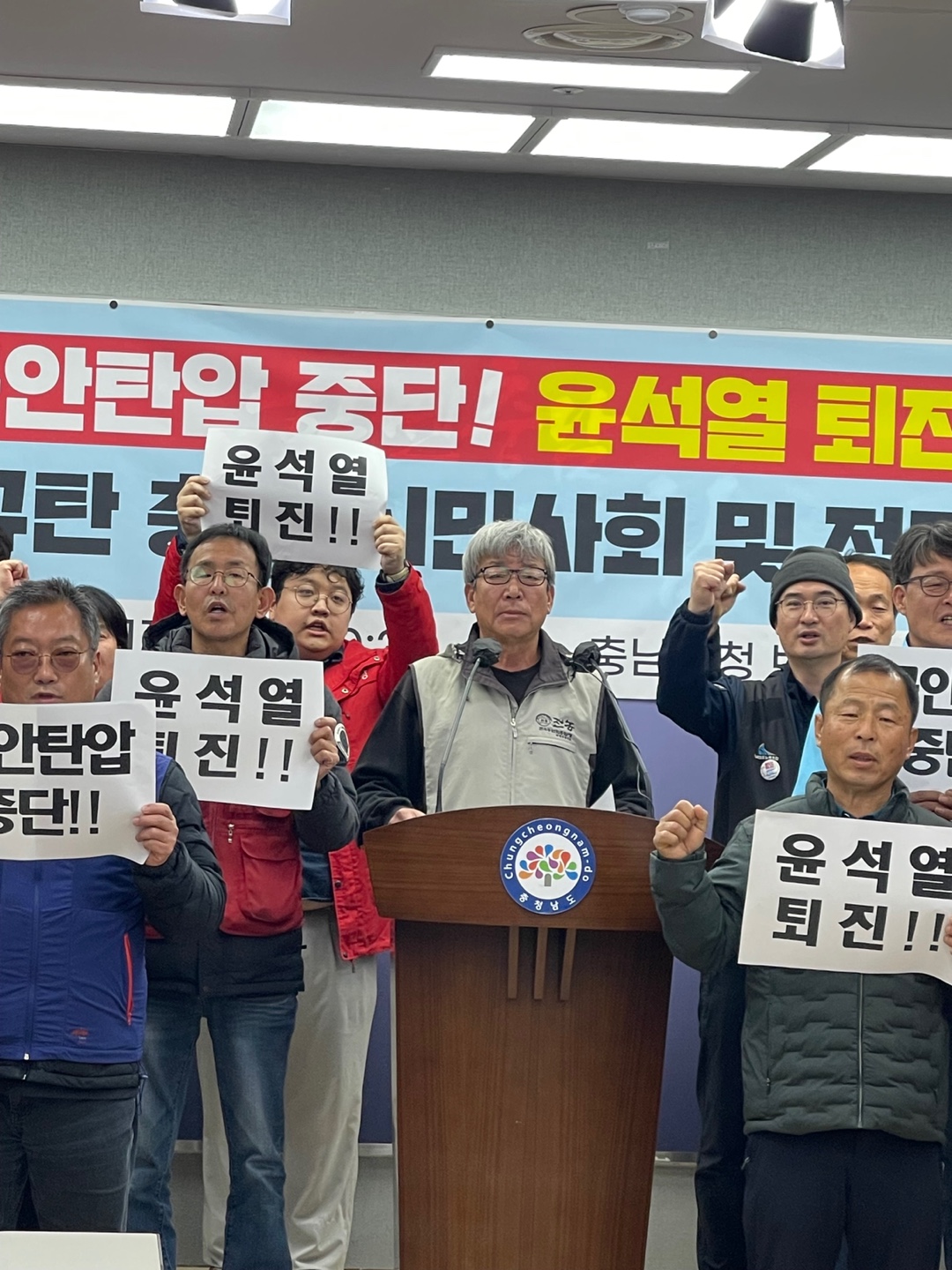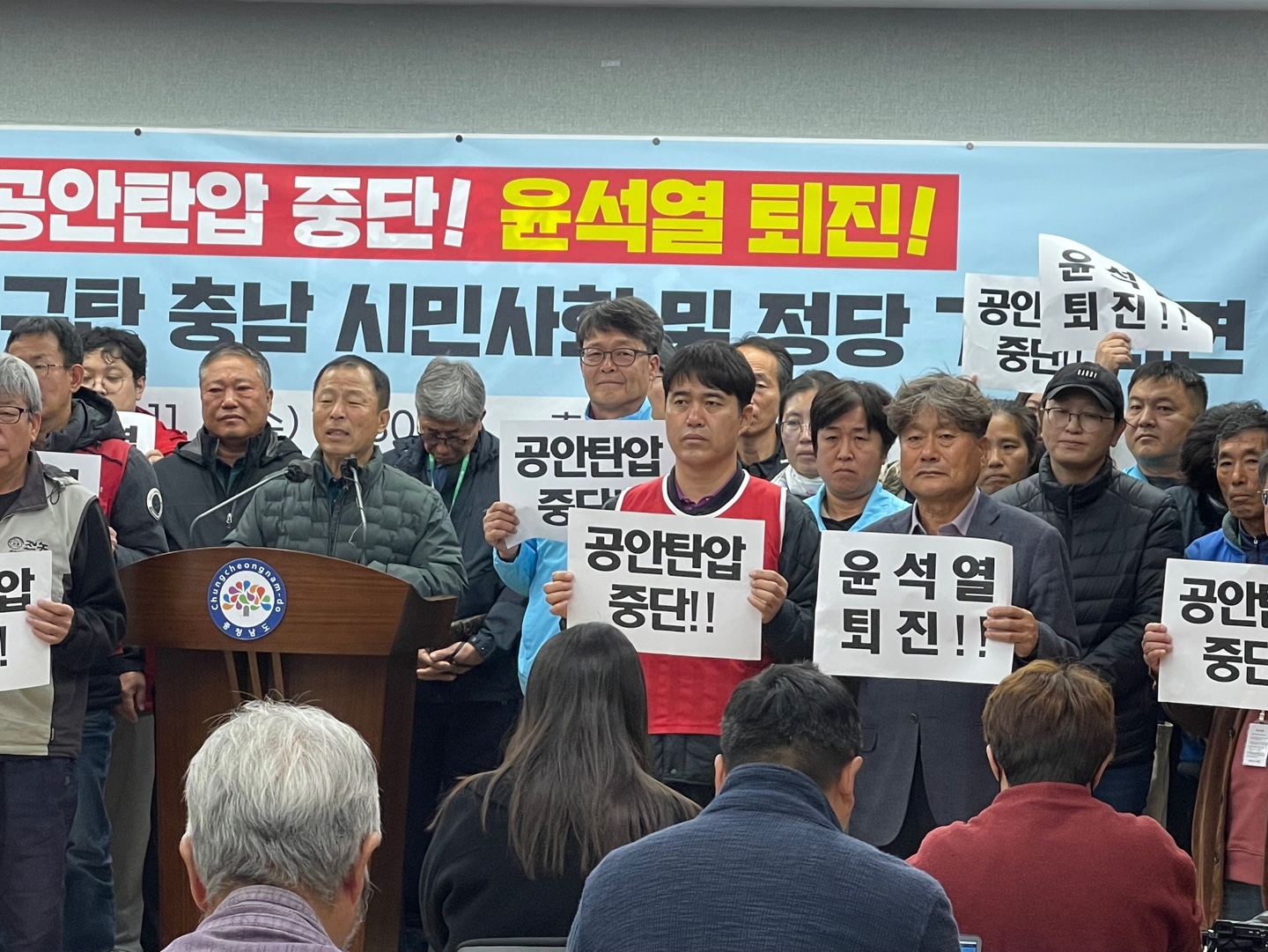 이러한 공안몰이는 오는 11일로 예정된 노동자, 농민 민중들의 분노가 모여지는 민중총궐기를 방해하고 정권의 수명을 늘려보고자 하는 발악이다. 정권의 위기를 국가보안법으로 결코 모면할 수 없다. 지난 역사는 독재정권의 공안몰이가 거꾸로 정권의 몰락을 앞당겼다는 것을 증명하고 있다. 민주주의를 지키고 민족의 화해와 협력을 바라는 충남의 시민들과 진보정당은 공안탄압을 결연히 반대하며, 윤석열정권에 맞서 민중총궐기의 성사를 위해 더욱 싸워 나갈 것을 다짐한다.