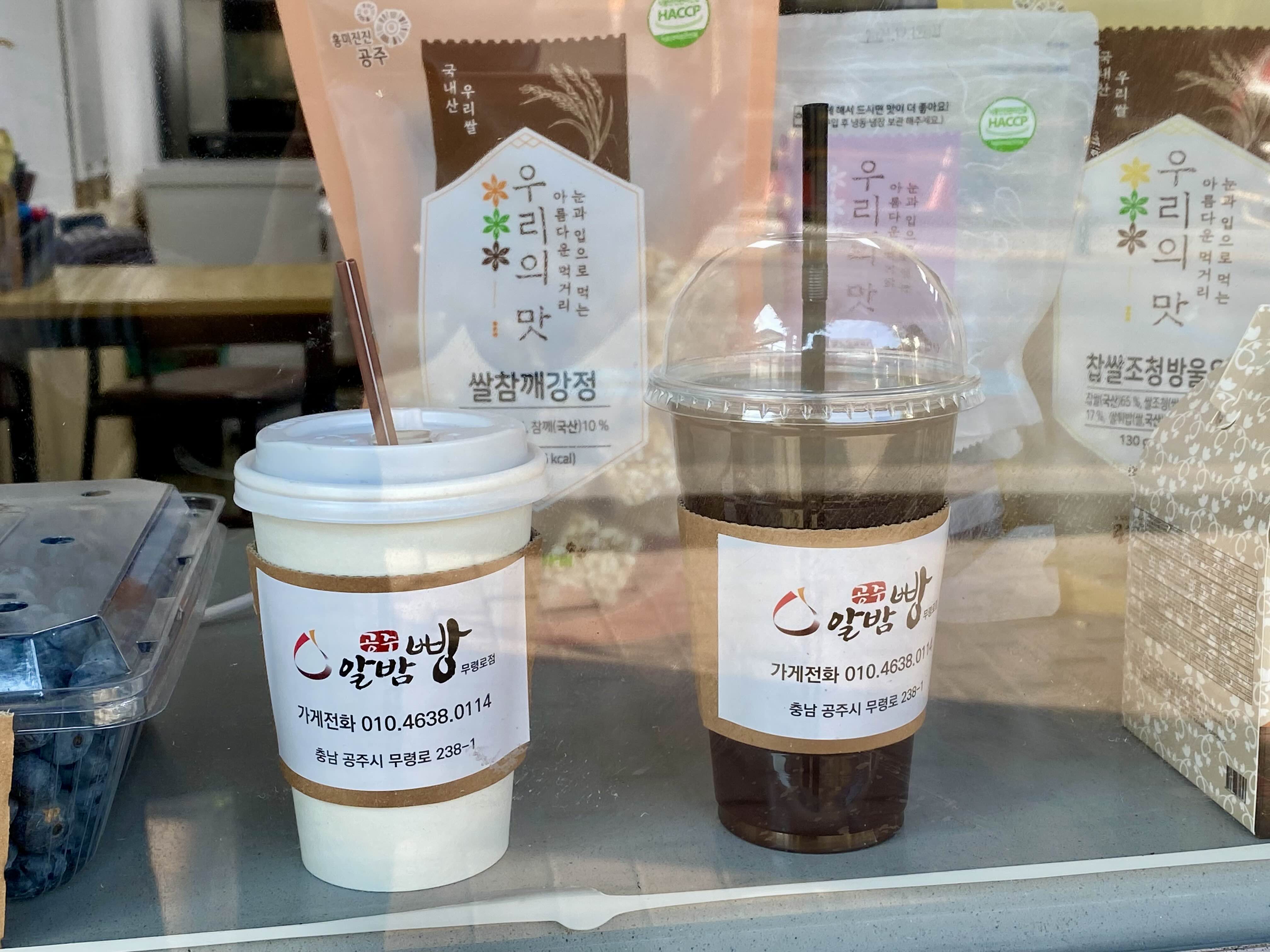 공주알밤빵무령로점에서는 커피도 팔어유. . . 지나시는 길에 들려주시면 고마워유. . .