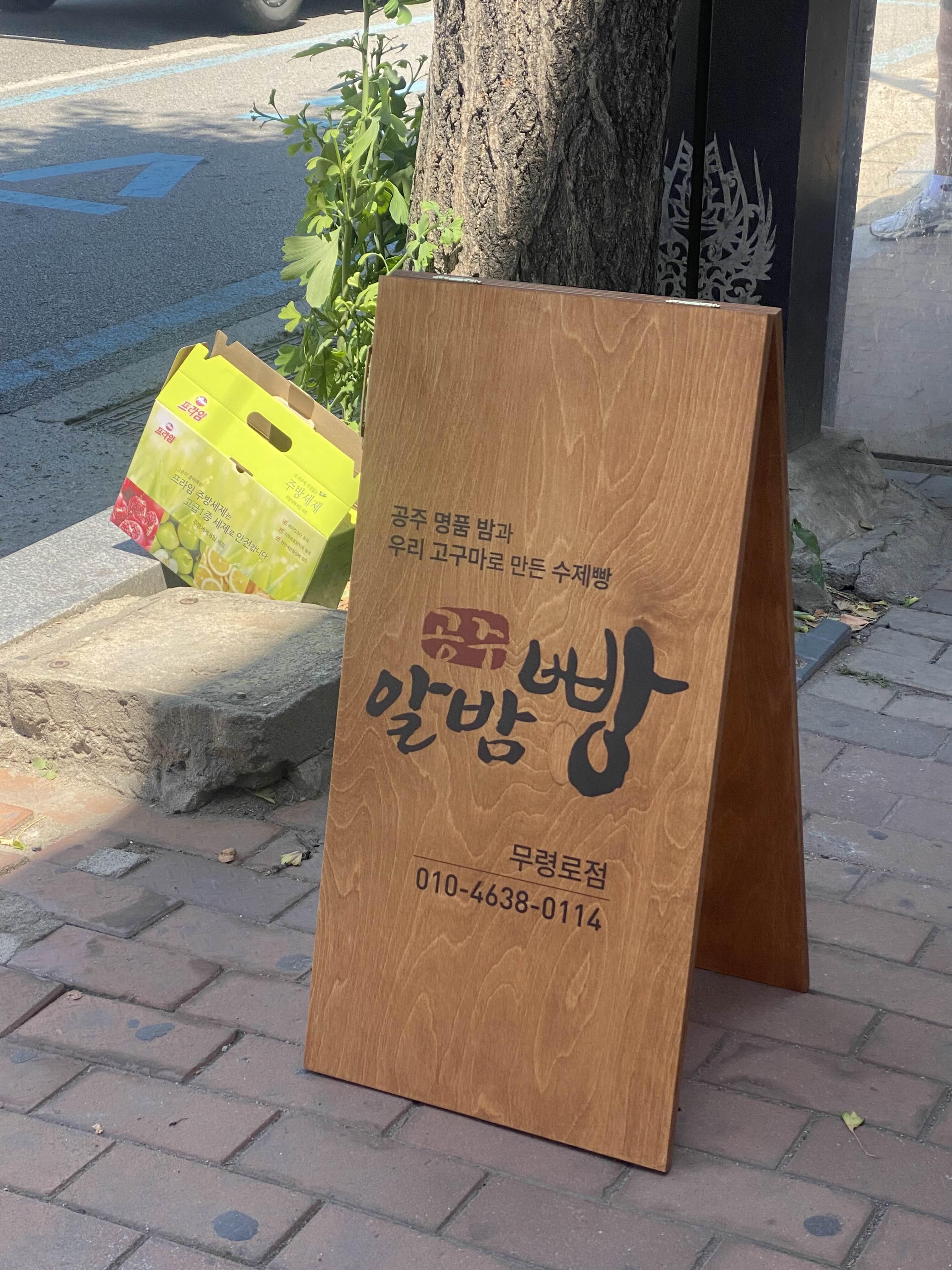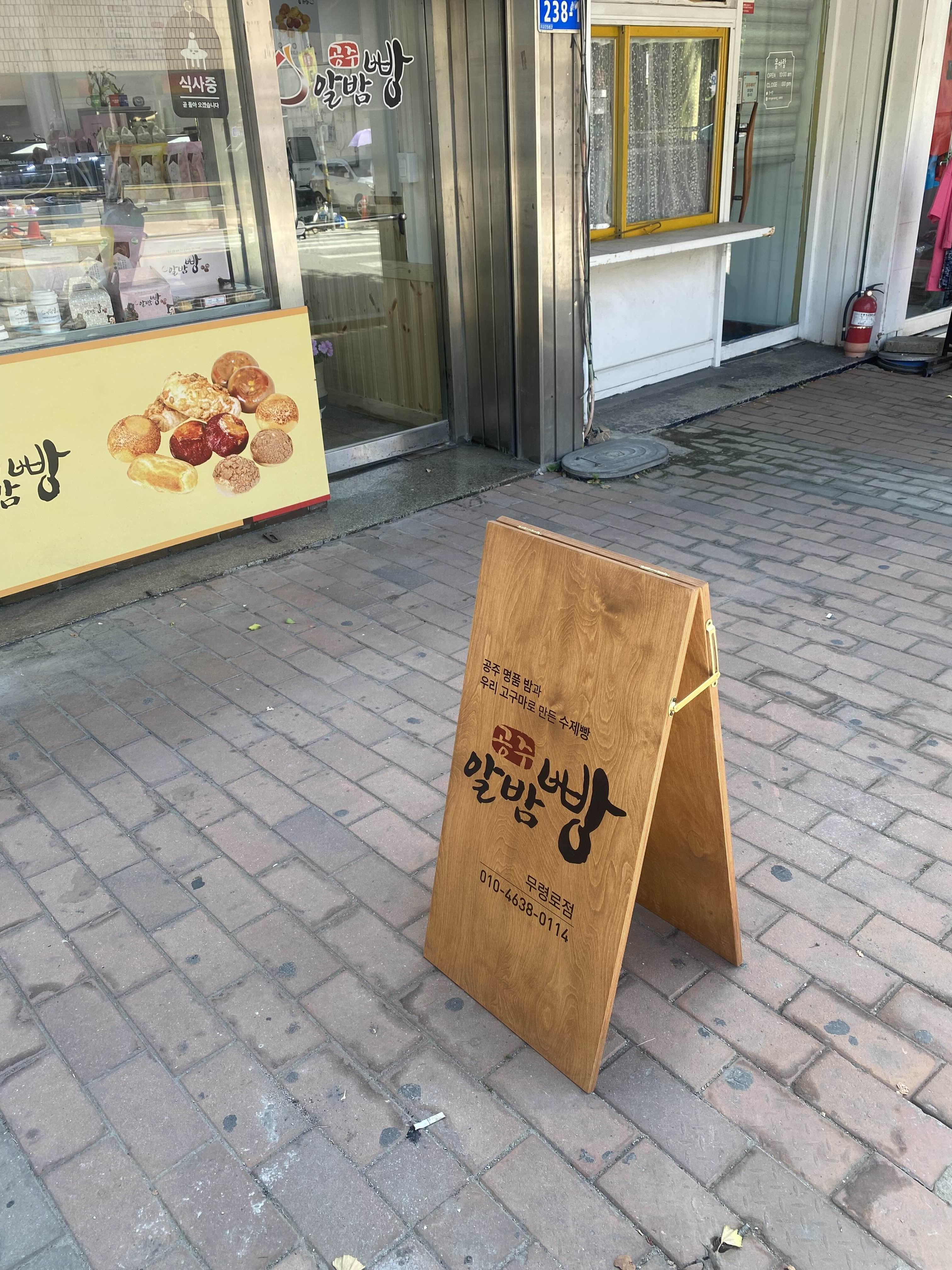가게가 안보인다고 입간판을 만들어 택배로 보냈습니다. 방울아 고마워. . . 공주오면 빵먹자. . .ㅋ ㅋ ㅋ